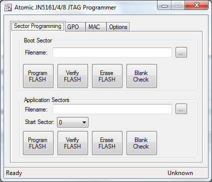INFINITY JN516X Infinity JN516X provides JTAG programming support for the NXP JN516X devices. Supports programming of both the boot and application sectors as well as the customer MAC address and features such as VBO voltage.As well as an interactive GUI, the software can also be driven by the command line making it suitable for production use. To support customers, Atomic also offers a 40QFN socketed board that can be used with the AP-114 programmer to program JN516X chips.