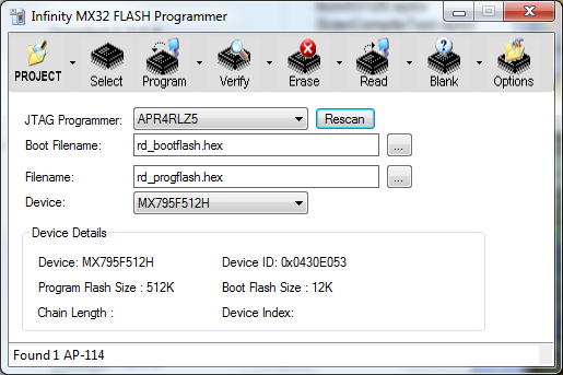 INFINITY MX32 Infinity MX32 provides JTAG Programming for Microchip PIC32MX devices.The software supports programming of both the boot sector and program sectors of the devices. The software supports devices that are part of a larger device chain and also supports multiple PIC32MX devices in the same chain.