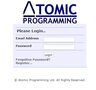 Once validated with a support contract you can register on the Atomic Website by selecting 'Log In' from the contact menu. You should then select 'Register...'
