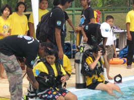 The outcome of the program is that the students, through classroom training and on job experience, will have skills to confidently function in the dive/tourism industry. They will be able to function on a professional, working level in English and Thai and with knowledge, tools and skills learnt on the training program, they will be able to function as an active citizen.