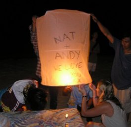 morning and raised £1070. 27 Jan 2006 - NATANDY fund total currently stands at £10,622.78! A fantastic effort so far. Jan 2006 - Beach Walk Early in 2005 members of the Linkage Community Trust in Skegness took part in a 4 mile Beach Walk from Skegness to Ingomells raising £608. After reading about the NATANDY Fund they kindly donated the £608 to the fund. 26 Dec 2005 - Tsunami 1st Anniversary Commemoration Service The families of Andy and Nat attended the 1st Anniversary memorial service held on the island of Phi Phi, remembering all those who died in the tragedy. Ribbons were tied to all the trees on the island, and in the evening thousands of traditional Thai floating lanterns were lit and released in the night sky - Very moving and an amazing experience we'll never forget!